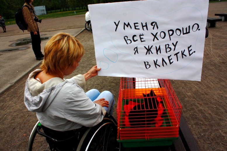 5 траўня ў Мінску прайшоў мітынг, арганізаваны Рэспубліканскай асацыяцыяй інвалідаў-калясачнікаў (РАІК), у падтрымку міжнароднага руху інвалідаў за роўныя правы і супраць дыскрымінацыі. Каля 100 чалавек з плакатамі казалі пра свае правы, праблемы і пра Канвенцыю аб правах інвалідаў. Сімвалам мітынгу стала котка ў клетцы. «У мяне ўсё добра. Я жыву ў клетцы», – напісана на плакаце. Так і інваліды-калясачнікі часта не могуць нават выйсці з дому, таму што бардзюр вышынёй 1 см. ужо з’яўляецца для іх такой жа перашкодай, як 3-х метровая сцяна для звычайных людзей.